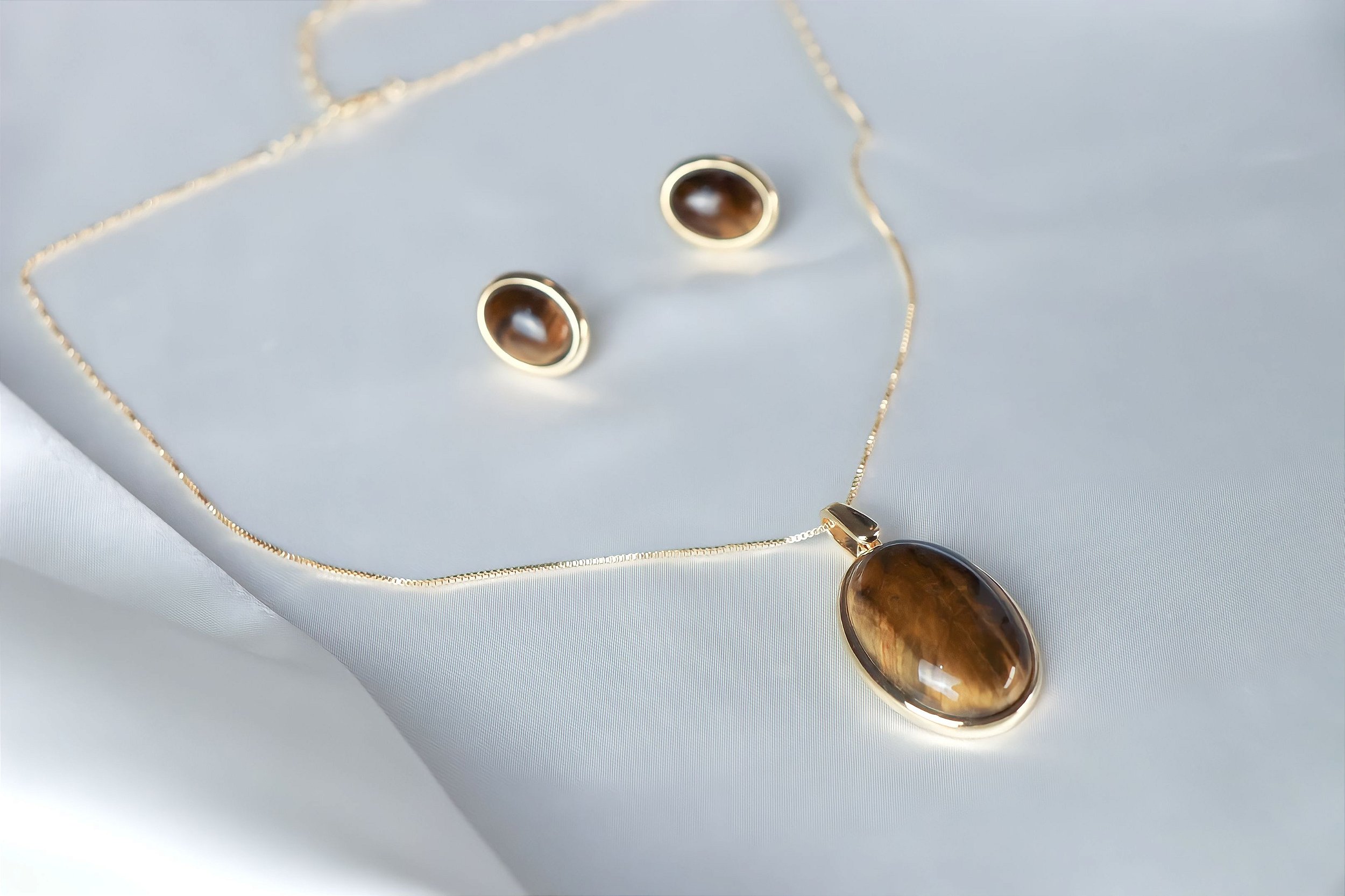 Adquira agora o Conjunto de Brinco e Colar de Olho de Tigre e eleve seu estilo e autoestima, enquanto mantém a proteção e a confiança que você merece!